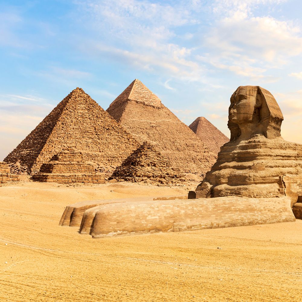 Visit the iconic Pyramids of Giza and Great Sphinx of Giza. Continue to the Grand Egyptian Museum to explore ancient treasures.