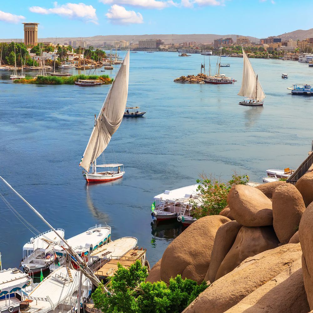 Fly to Aswan and board your Nile cruise, beginning your journey along the river.